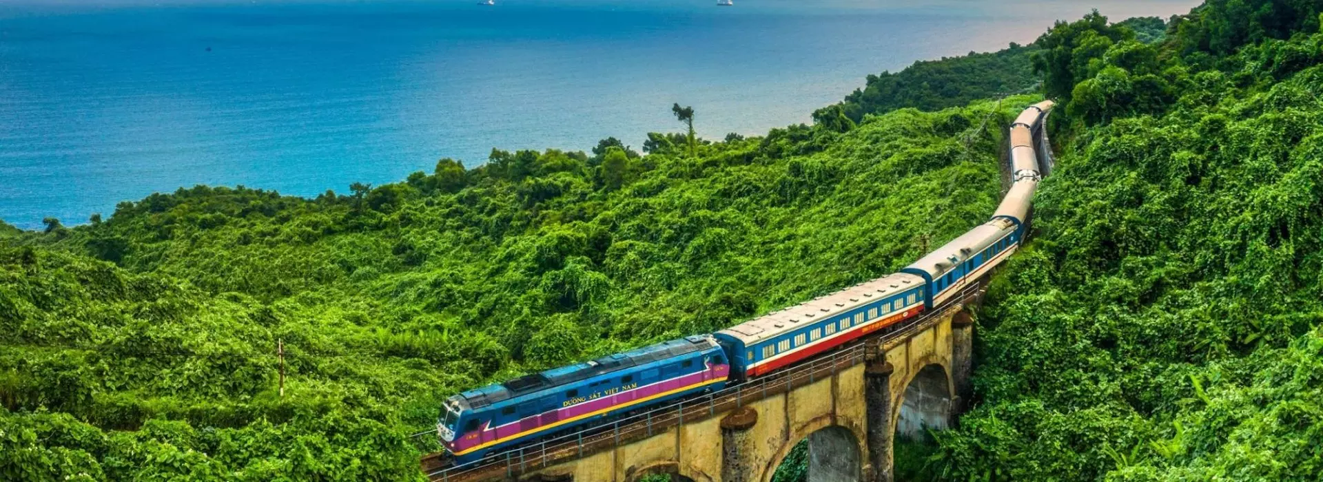 Při cestě vlakem se nádherně rozvíjí malebná krajina a živá města Vietnamu. Železniční síť v zemi měří přes 2 600 kilometrů a nabízí nezapomenutelný způsob cestování po celé zemi s nízkými emisemi uhlíku.